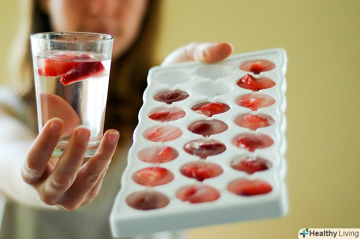 Покладіть полуницю в кожну клітинку лотка для кубиків льоду і залийте водою.- Ви можете замінити воду лимонадом і дати ці ласощі дітям на вечірці. Не використовуйте даний спосіб в якості регулярного десерту, так як лимонад шкідливий для зростаючих зубів. Якщо ви хочете приготувати щось більш корисне і схоже на морозиво, то заморозьте пюре з полуниці і бананів в спеціальній формі для фруктового морозива.