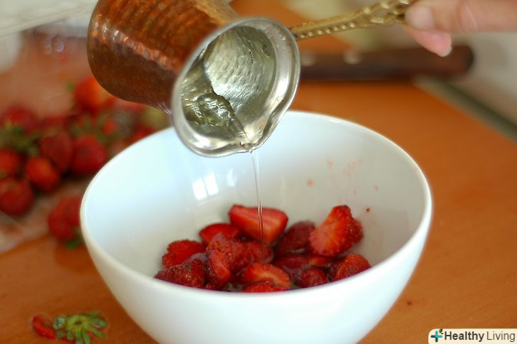 Посипте цукром (1/2 склянки на літр полуниці).- Обережно перемішайте, щоб цукор розчинився.постарайтеся не пошкодити ягоди.