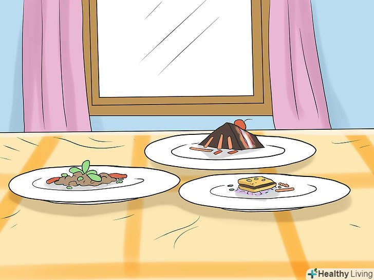 Зверніть увагу на презентацію.коли їжа виявиться у вас на столі, зверніть увагу на зовнішній вигляд страви. Їжа виглядає красивою і акуратною або безладною і несвіжою? Важливо описувати всі свої враження, а не тільки смак страви.- Якщо не заборонено правилами, то зробіть знімок страви на камеру смартфона. Пізніше вам буде простіше описати зовнішній вигляд і нічого не забути.