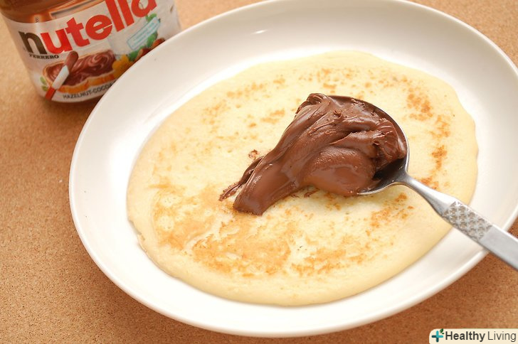 Викладіть млинець на тарілку.покладіть ложку з гіркою Нутелли на млинець і розподіліть по поверхні млинця.