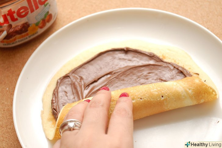Загорніть млинець трубочкою.злегка натисніть на млинець, щоб рівномірно розподілити Нутеллу.