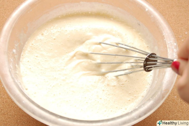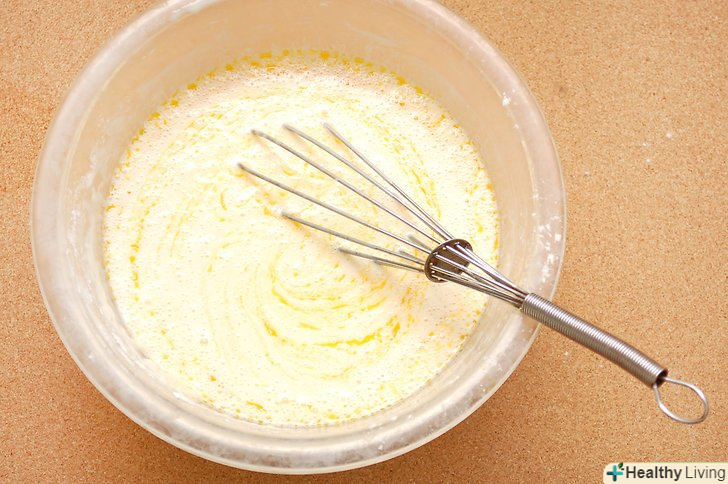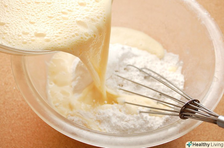 Змішайте яєчно-молочну суміш з борошном, цукром і сіллю.