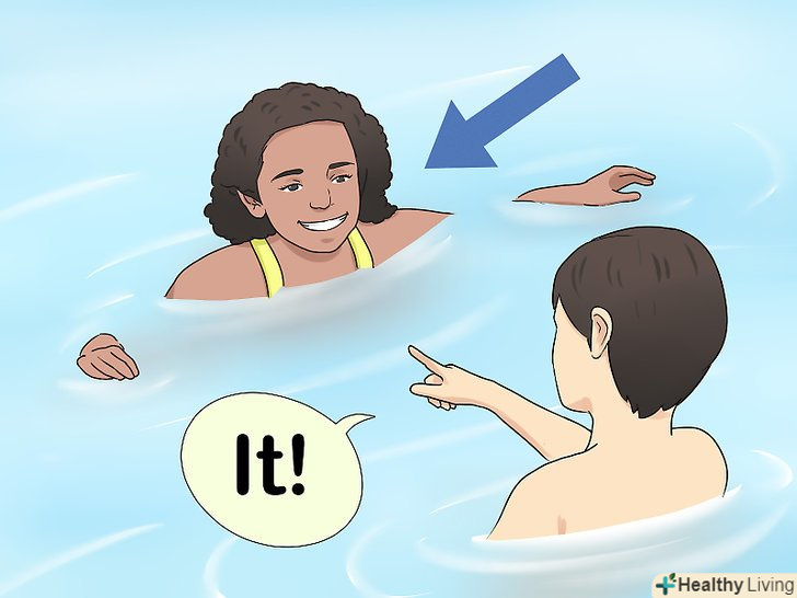 Грайте до тих пір, поки гравцеві не передадуть латку.оскільки гра йде в тиші, лов буде намагатися визначити гравців по звуках у воді. Він почує, як ти хихикаєш або дихаєш, якщо ти поруч. Це складно не створювати звуків у воді! Лов повинен бути обережний, не рухатися занадто швидко і тримати руки перед собою, щоб не врізатися в стіни.- Як тільки латку передали іншому гравцеві, новий лов починає рахувати до десяти і все починається заново. Веселощі може тривати скільки захочете. Найкраще грати, коли поруч нікого немає-якщо ви ловите один одного наосліп, а поруч сторонні люди, ви будете їх тільки дратувати! Насолоджуйтесь грою в» лову наосліп " скільки завгодно!