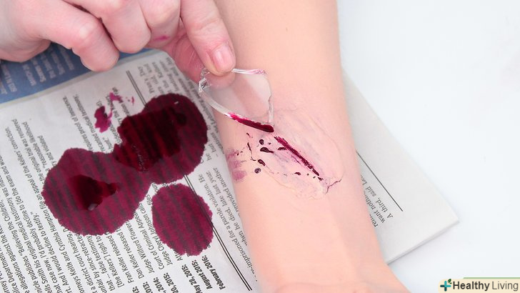 - Якщо ви не збираєтеся вставляти в фальшивий поріз предмети, зробіть підроблену шкіру, використовуючи вазелін і білу муку. Додайте какао-порошок або порошок деревного вугілля, щоб у вас вийшов необхідний тон шкіри.[14] така шкіра легко знімається, тому не тріть її об інші поверхні.
