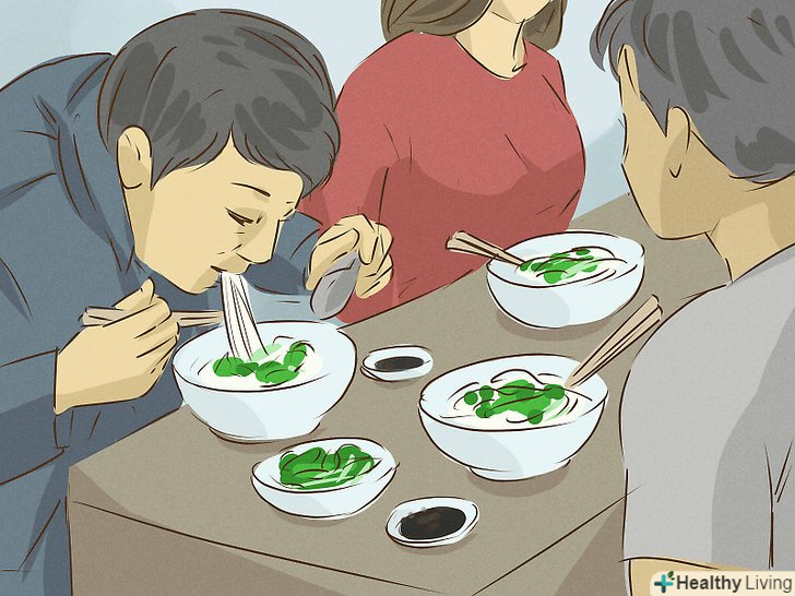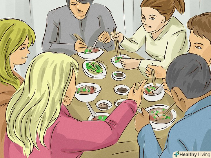 Зачекайте, поки господар будинку почне їсти.під час обіду з в'єтнамськими друзями або родиною, необхідно почекати, поки глава сімейства або найстарший з них приступить до трапези. Якщо ви сумніваєтеся, почекайте, поки один з ваших дорослих в'єтнамських компаньйонів не почне їсти.- Залежно від ситуації, обід може починатися з невеликого підношення до сімейного вівтаря Будди.[15]