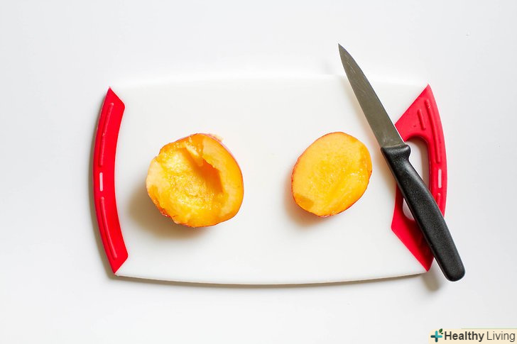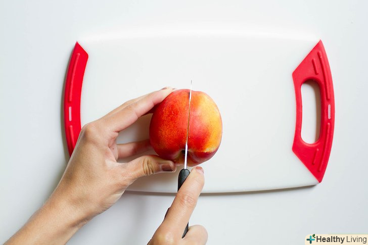 Візьміть невеликий ніж і розріжте нектарин на дві частини.кісточка при цьому повинна виявитися в м'якоті однієї з отриманих половинок нектарина.