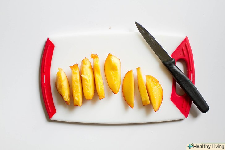 Далі їжте нектарин так, як вам подобається: можете взяти в руки одну половинку і насолоджуватися смаком, відкушуючи по чуть-чуть з цільного шматка, а можете нарізати нектарин невеликими шматочками.