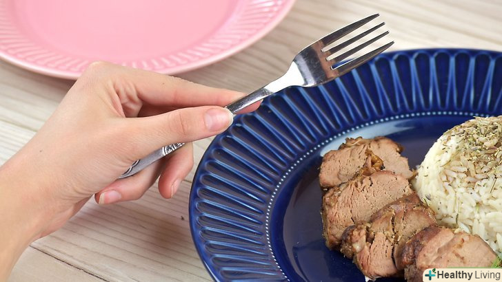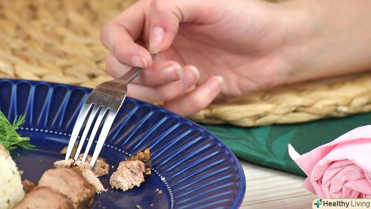 За допомогою вилки покладіть невеликий шматок страви собі в рот. зуби повинні бути звернені вниз. Задня частина вилки дивиться вгору.- Візьміть вилку в ліву руку, навіть якщо ви правша. Експериментуючи, ви виявите, що цей метод ефективніший за інший.