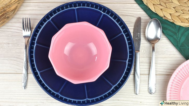 - Столові прилади зазвичай розташовані в порядку їх використання. Якщо раптом засумніваєтеся-почніть з використання приладів на зовнішній стороні, а потім на внутрішній.[7]