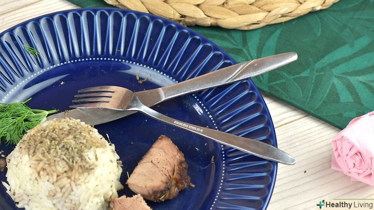 - Справляйтеся з рисом та іншою дрібною їжею.якщо у вас немає ложки, зберіть їжу виделкою, а не намагайтеся наколоти її. Ті, хто слідує американському стилю, вважають за краще покладатися виключно на вилку (знову ж таки, це не дуже ефективно), в той час як в європейському стилі допустимо використовувати лезо ножа або шматок хліба.