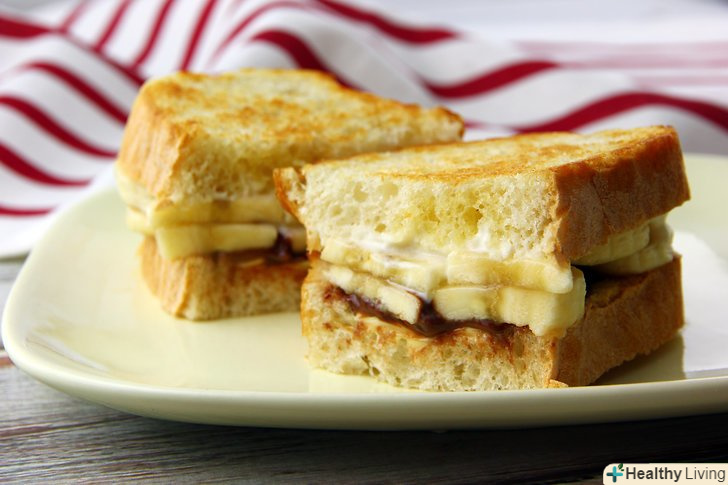 Приготуйте смажений бутерброд з сиром і пастою Nutella.- Наріжте банан на шматочки.