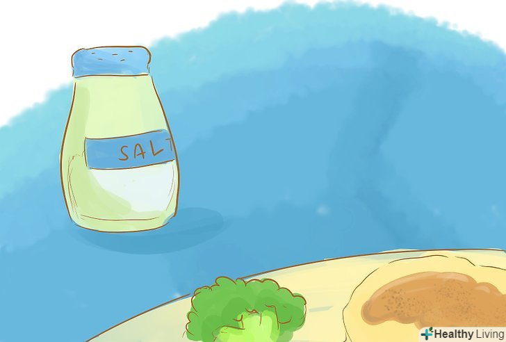 Обмежте кількість солі.у кожного з нас власне уявлення про необхідну кількість солі. Постарайтеся помилятися в сторону, коли солі занадто мало, так як це завжди можна виправити, досолити блюдо. Поставте сільничку на стіл так, щоб ваш партнер завжди міг додати сіль, якщо він вважатиме це за потрібне.