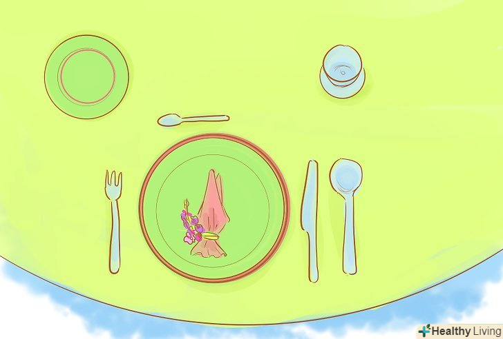 Накрийте на стіл.бажано зробити це до того, як ви почнете готувати. Накрийте стіл хорошою скатертиною і при бажанні прикрасьте серветками місця, де ви будете сидіти. Постарайтеся, щоб тарілки і чашки відповідали за стилем, і додайте необхідні столові прилади.- Наприклад, якщо ви подаєте стейки, перевірте, щоб в кожному індивідуальному наборі столових приладів був спеціальний ніж для легкого розрізання м'яса стейків.