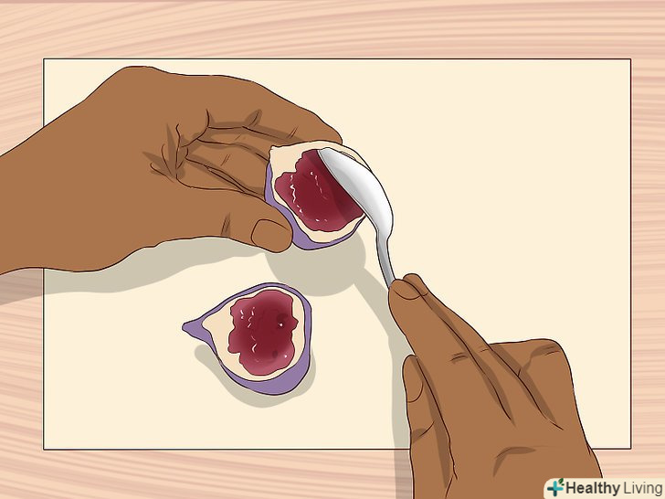Видаліть кристали цукру.це можна зробити, розпорошивши на 1/2 склянки (125 мл) інжиру 1 чайну ложку (5 мл) води і нагрівши плоди в мікрохвильовій печі при високій температурі протягом однієї хвилини.- З стиглого інжиру часто сочиться солодкий сироп, який кристалізується на поверхні. Ці кристали можна вживати в їжу або видалити.