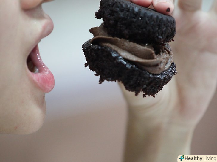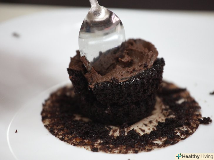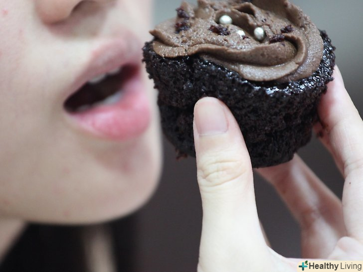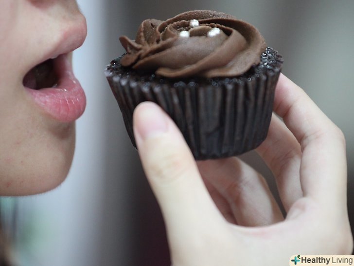 Кусайте капкейк.піднесіть капкейк до рота і відкушуйте прямо від нього.- Зітріть всю глазур, яка виявилося у вас на носі поки ви його їли.