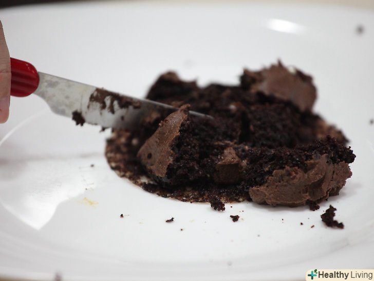 Використовуйте ніж, щоб розрізати капкейк на шматочки.акуратно розділіть капкейк на дві рівні частини за допомогою пластикового або іншого тупого ножа. Якщо хочете, ви можете розділити капкейк на шматочки для одного укусу.- Пам'ятайте, що потрібно розрізати капкейк вертикально, а не горизонтально. Верх і низ повинні стосуватися один одного, на відміну від попередніх методів.