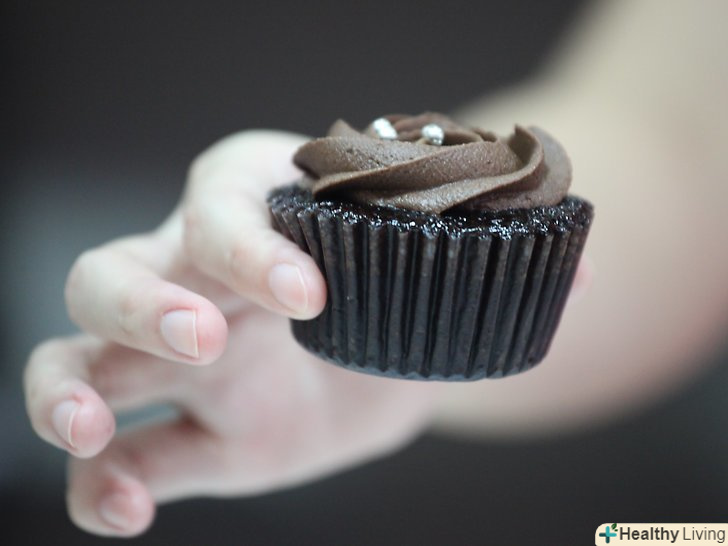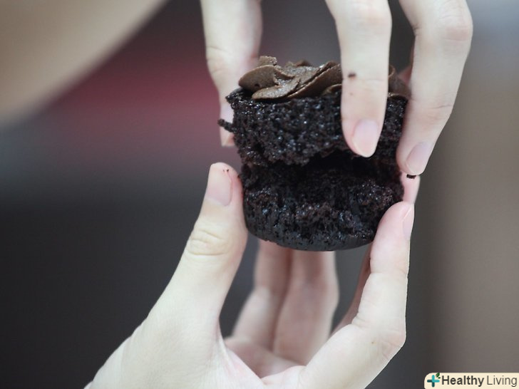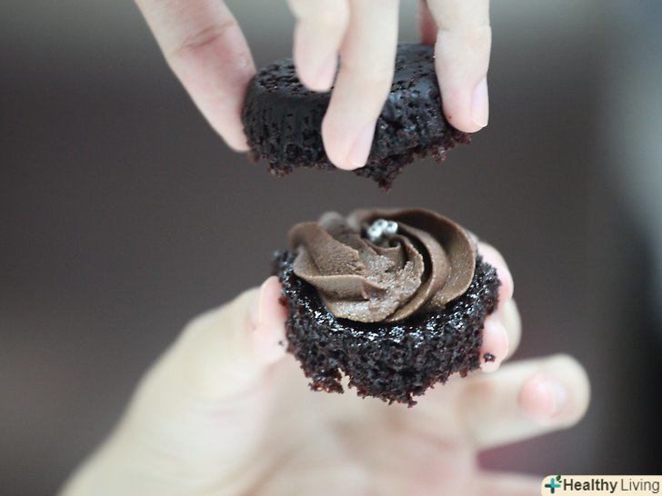 Міцно тримайте капкейк однією рукою.акуратно відщипніть порцію капкейка біля верхівки за допомогою неведущей руки. Акуратно тримайте його, щоб не забруднити глазур'ю руки.