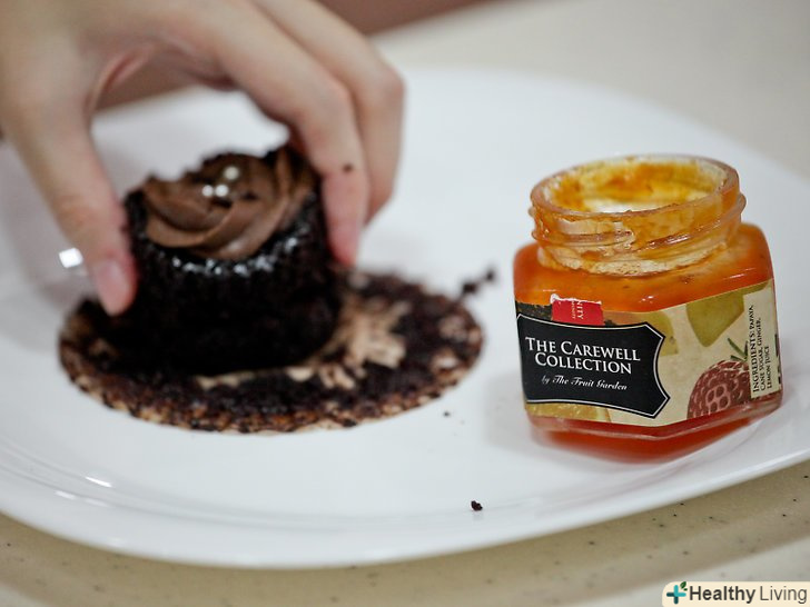 Покладіть капкейк на тарілку.поставте капкейк посередині тарілки.- Ця техніка найкраще підходить для капкейков без глазурі або з невеликою її кількістю, так як для смаку буде використовуватися джем. Ви можете також використовувати його для капкейків з великою кількістю глазурі, але пам'ятайте, що результат буде не дуже акуратним, хоча і більш смачним.
