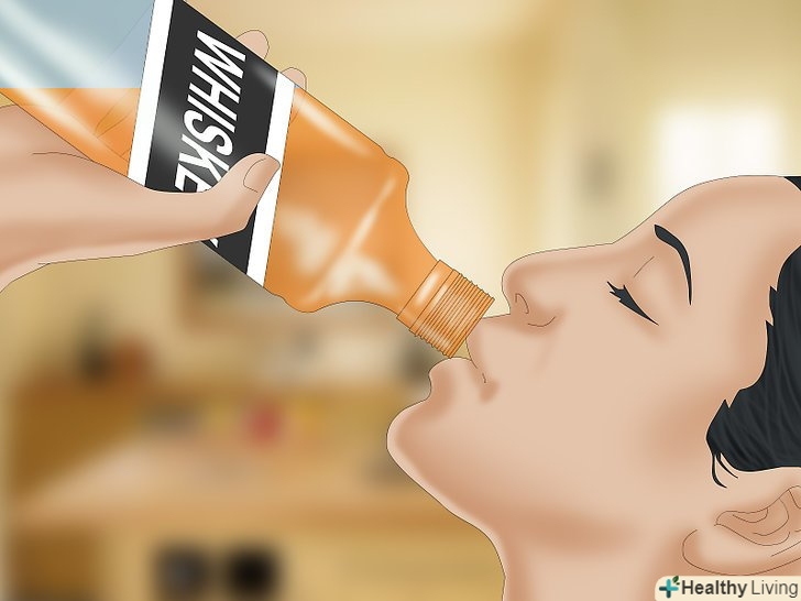 Випийте міцний алкогольний напій.напої з високим вмістом алкоголю (наприклад, віскі), мають ефект м'якого анестетика, впливаючи на смакові рецептори в порожнині рота і в слизовій носа. Для більшої ефективності постарайтеся з'їсти блюдо з неприємним присмаком відразу після того, як зробите ковток міцного алкоголю.- Якщо ви неповнолітній і у вас немає доступу до міцного алкоголю, альтернативою може стати ополіскувач для рота, який містить невелику кількість спирту (наприклад, «лістерин») — наберіть в рот трохи рідини, прополощіть і виплюньте. "Лістерин" не тільки допоможе притупити смакові рецептори, але і відверне вашу увагу приємним ароматом і присмаком м'яти і свіжості.