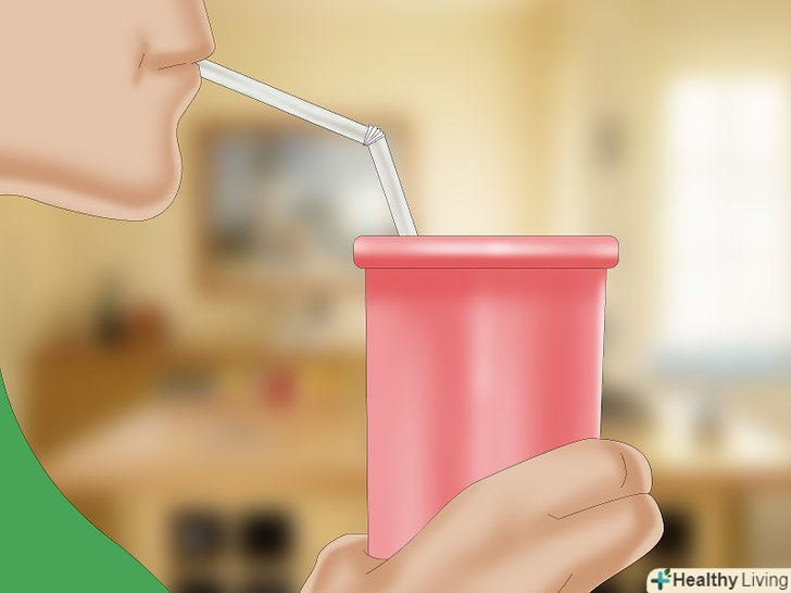 Скористайтеся соломинкою.якщо вам належить випити щось неприємне на смак, візьміть соломинку, щоб уникнути контакту рідини з смаковими рецепторами мови. Спробуйте направити соломинку ближче до кореня язика, щоб рідина практично відразу потрапила в горло. Таким чином, вам вдасться уникнути її контакту з смаковими рецепторами мови.- Насправді та ж логіка застосовна до неприємної на смак їжі. Відкусіть і змістіть харчову грудку з боків від мови, щоб їжа була розташована поруч з щокою. Потім постарайтеся прожувати їжу так, щоб вона мінімально контактувала з смаковими рецепторами мови.