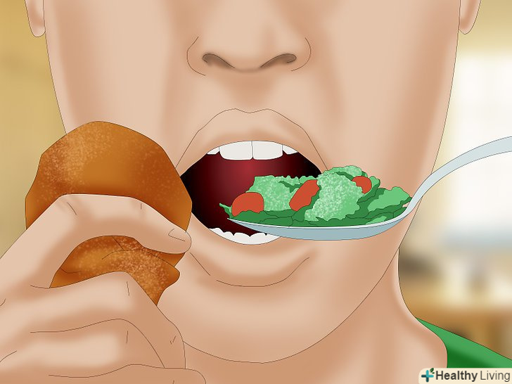 Спробуйте висушити порожнину рота.смак відчувається багато в чому завдяки слині. Ми розрізняємо різні смаки завдяки тому, що їжа контактує зі слиною. Візьміть паперовий рушник або серветку і спробуйте промокнути поверхню язика і висушити порожнину рота. Це допоможе нейтралізувати практично весь смак. Але пам'ятайте, що нова порція слини почне вироблятися протягом декількох секунд, тому після того, як ви промокнули мову серветкою, їсти потрібно дуже швидко.[2]- Гарною альтернативою паперовому рушнику і серветкам є ватяні диски і ватяні палички, але, швидше за все, вам знадобиться кілька штук.
