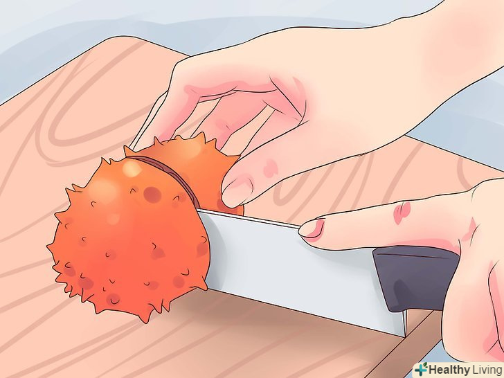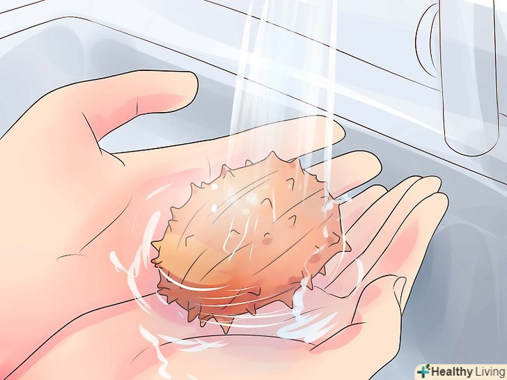 Виберіть повністю зрілий ківано.у нього буде помаранчева шкірка з помаранчевими шипами. Злегка натисніть на фрукт, щоб переконатися, що він піддається, а не твердий як камінь і зелений.[1] якщо ви не можете знайти повністю зрілий фрукт в магазині, то, купивши його, почекайте, поки він не дозріє.