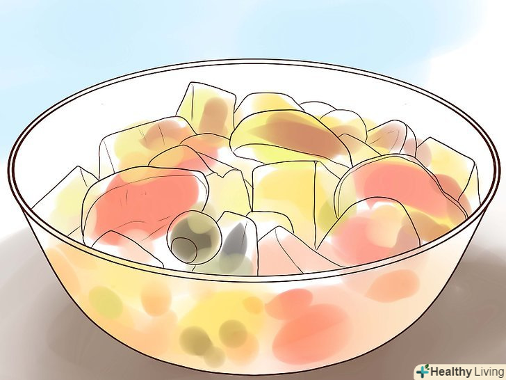 Додайте ківано УФруктовий салат .подібно до ківі, ківано може стати гарним барвистим доповненням до фруктового салату і несподіваним задоволенням для гостей. Змішайте банани, манго і диню з невеликою кількістю ківано, щоб вийшов гарний літній фруктовий салат.[3]