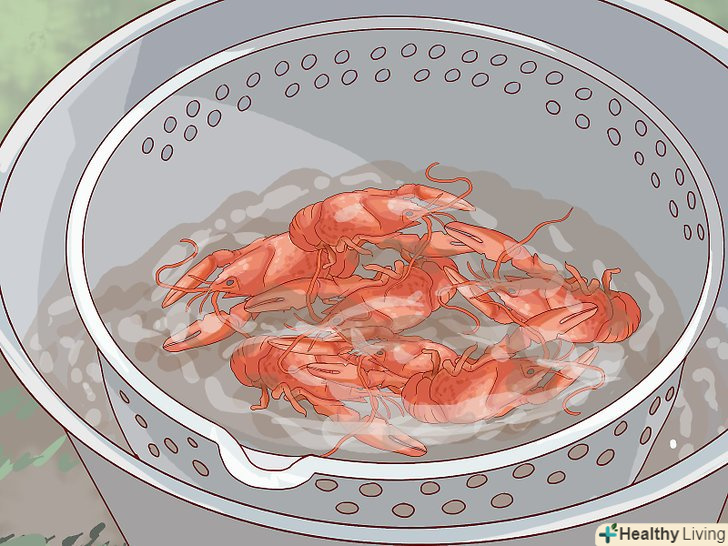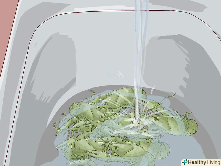 Помийте лангустів. Цей процес ще називається очищенням лангустів. Помістіть їх у велике відро і наповніть його чистою водою. Перемішуйте лопаткою протягом декількох хвилин. Сполосніть їх і перекладіть в іншу чисту ємність.- Не залишайте живих лангустів надовго у воді, так як вони потонуть.
