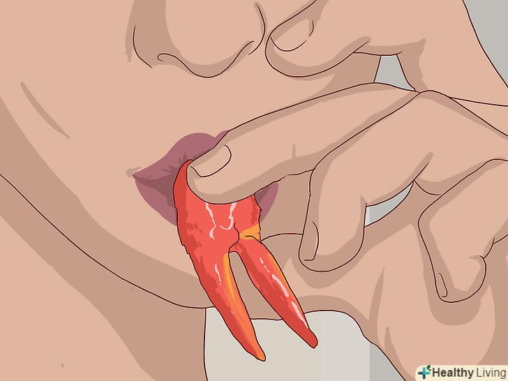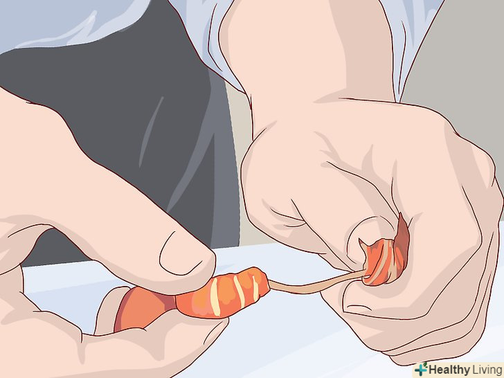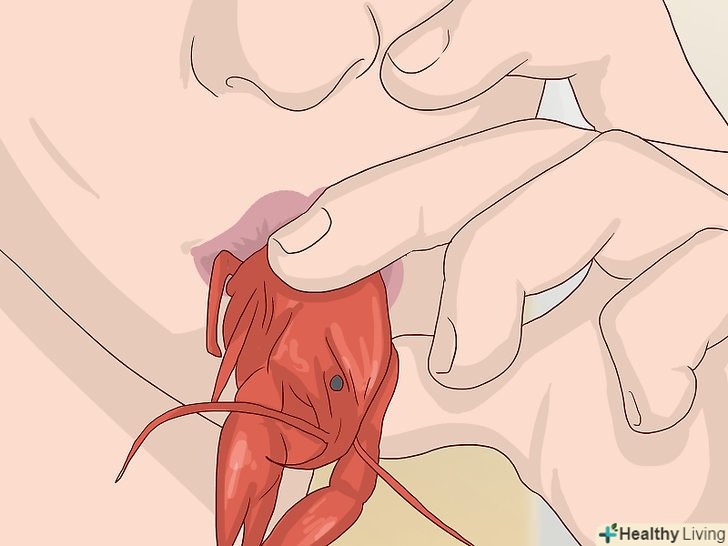 Відокремте голову від хвоста.Стисніть голову двома пальцями однієї руки, а другий тримайте хвіст. Обертайте голову, поки вона не відірветься.- Голова повинна легко відриватися. Якщо це зробити важко, можливо, лангуст недоварений.