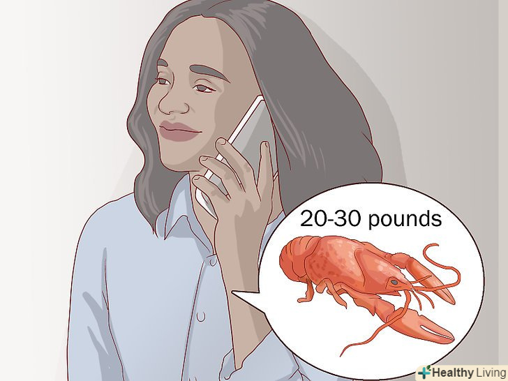Замовте лангустів.залежно від розміру вечірки, вам знадобиться від 9 до 13,5 кілограм лангустів. Розраховуйте від 900 грам до 1,4 кілограма на людину. Більшу частину ваги займуть відходи від лангуста.- Якщо ви знаходитесь на півдні Сполучених Штатів, то, залежно від сезону, лангусти можна придбати в магазині морепродуктів або бакалійній крамниці, не кажучи про лангустові фургони.