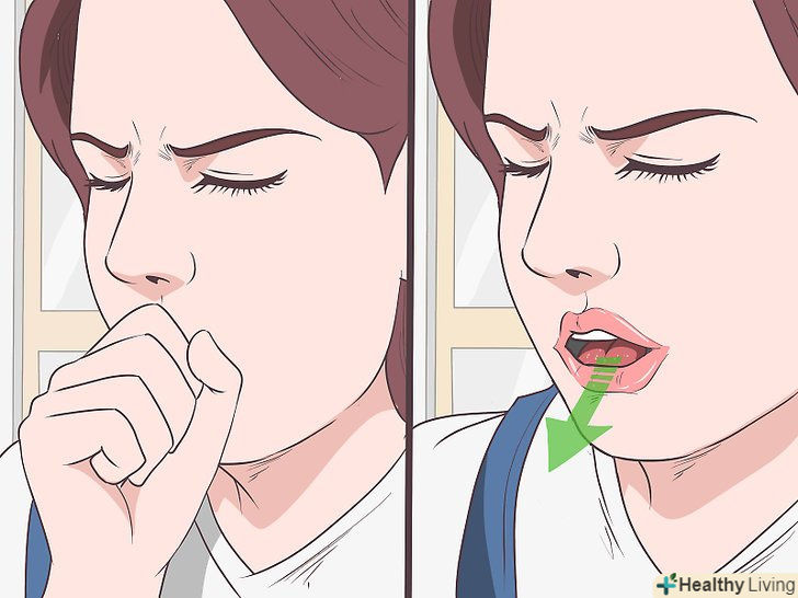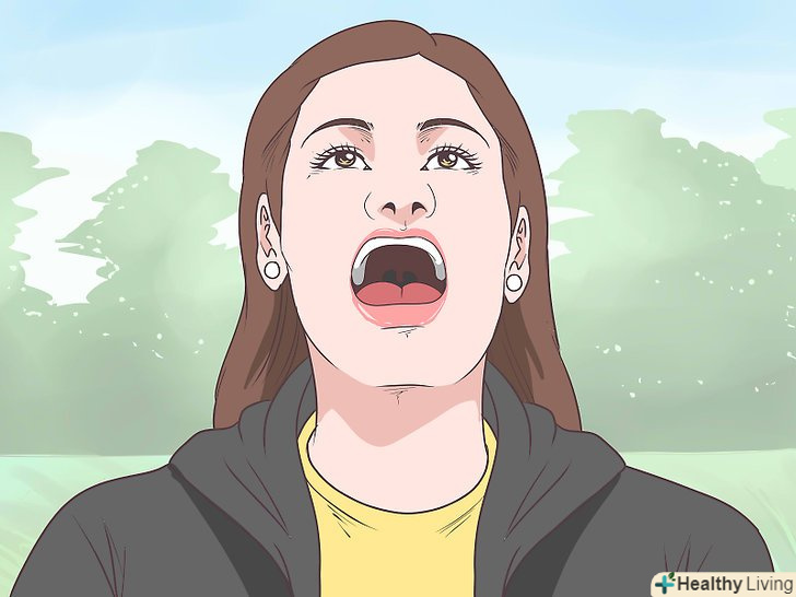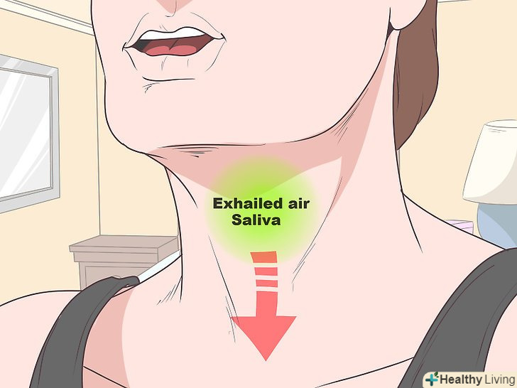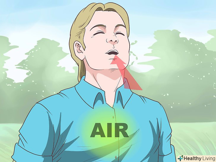 Видихніть в рот і проковтніть повітря разом зі слиною.можливо, для цього буде потрібно трохи потренуватися. Постарайтеся ковтати, як ніби це шматок їжі. Відчуйте, як повітря, що наповнює Ваш рот, проходить вниз по вашому стравоходу. В результаті ви будете переміщати повітря зі своїх легенів в живіт, а він буде залишати організм через глотку у вигляді відрижки.[6]