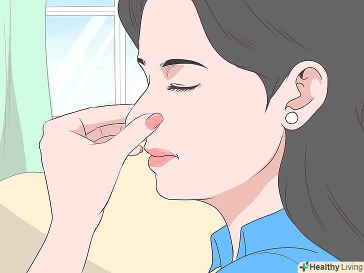 Закрийте ніс і затисніть ніздрі.Вам слід переконатися, що ви не вдихнете ще повітря. Однак, якщо в якийсь момент ви відчуєте необхідність вдихнути-зробіть це.[5]