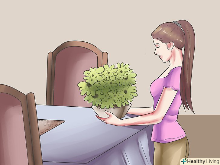 Прикрасьте стіл (якщо хочете). прикраси повинні бути яскравими і веселими і відповідати і відповідати випадки, але, в принципі, ви можете вибрати будь-які прикраси. Найчастіше для прикраси столу використовують квіти, то переконайтеся, що вибрані вами квіти не мають сильного запаху, який може викликати у кого-то з ваших гостей алергію. Найкраще використовувати квіти без запаху, також можете розкласти по столу пелюстки троянд.- Не ставте на стіл дуже громіздкі прикраси, через які вашим гостям буде важко дотягнутися до їжі. Розставляйте прикраси після того, як розставите посуд і їжу, і ви зможете замаскувати ними залишилися порожні місця.