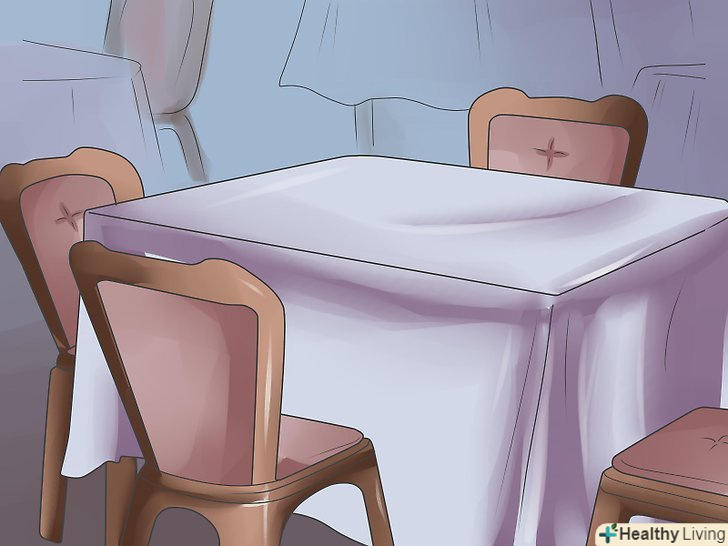 Визначтеся зі столом.розмір столу повинен бути таким, щоб на ньому вмістилася весь посуд, їжа і чай. Якщо за столом не поміщаються всі стільці, взагалі їх приберіть, нехай це буде чаювання-«шведський стіл». Така форма менш офіційна, ніж якби гості сиділи, і більше підходить для денного часу, ніж для вечірнього.- Якщо приміщення невелике. Стіл можна поставити поруч зі стіною, якщо місце дозволяє, то бажано поставити стіл в центрі, і тоді у всіх гостей буде можливість підійти до столу і взяти те, що їм подобається.