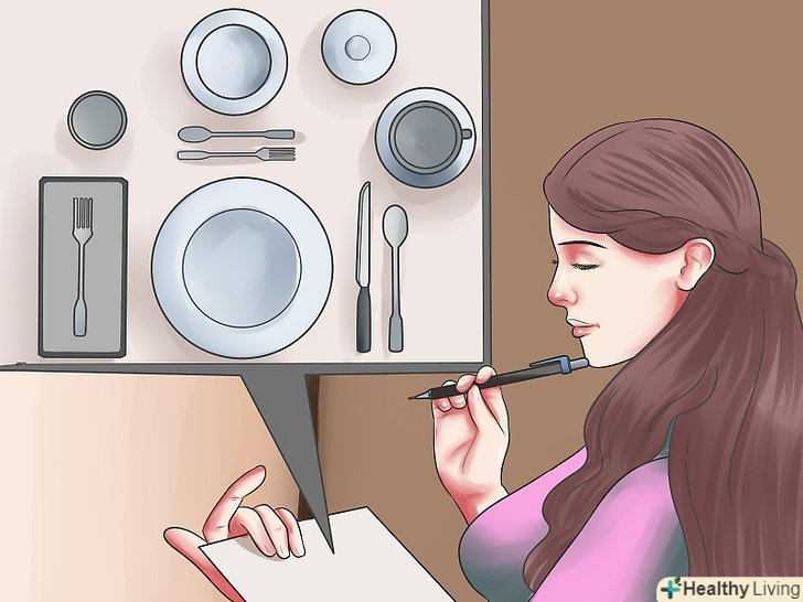 - Якщо це буде повноцінна вечеря, подбайте про столових приладах для всіх страв. Розкладіть столові прилади так, щоб на початку вечері люди брали ті прилади, які знаходяться далі від тарілки, в кінці вечері – ті, що лежать поруч з тарілкою.
