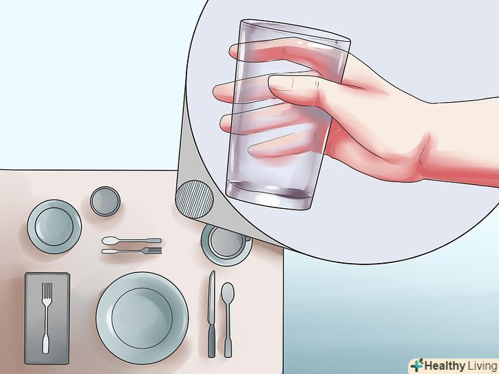 При необхідності поставте біля кожної тарілки по скляній склянці.стакан з водою поставте вище ножа, або. Якщо ніж не передбачений, вище чашки. Якщо передбачений ще один напій-лимонад або шампанське – поставте ще один стакан/келих по праву сторону від склянки з водою.