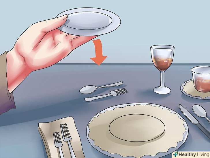Розкладіть столові прилади.залежно від їжі, яку ви плануєте подавати, на кожного гостя потрібно буде розкласти по 1-2 прилади. Вилку потрібно класти зліва від тарілки, ложку – праворуч, ніж – між тарілкою і ложкою, гостра сторона леза повинна дивитися на тарілку. [4][5]- Якщо плануєте подавати м'ясо-покладіть ніж для стейка.