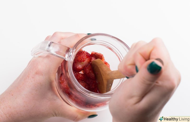 Роздушіть склянку полуниці дерев'яною ложкою.