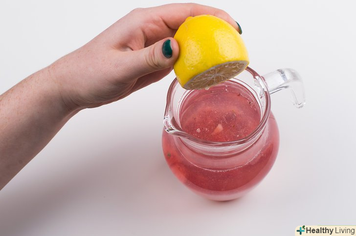 Додайте лимонний сік і додаткову воду в полуничний сік.