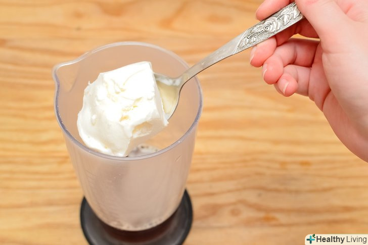 Додайте ½ склянки (120 мл) льоду і 1 ложку ванільного морозива в блендер.