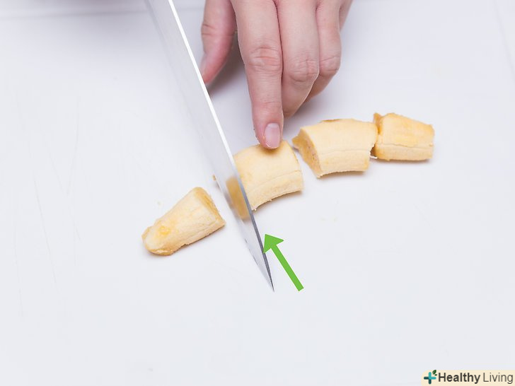Почистіть і поріжте 2 банана.використовуйте свіжі, стиглі банани, якщо це можливо. Якщо ви любите густий смузі, використовуйте заморожені банани. Поріжте банани, щоб вам легше було подрібнити їх до однорідної консистенції.