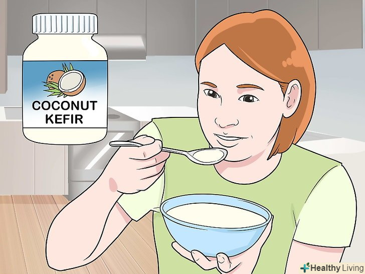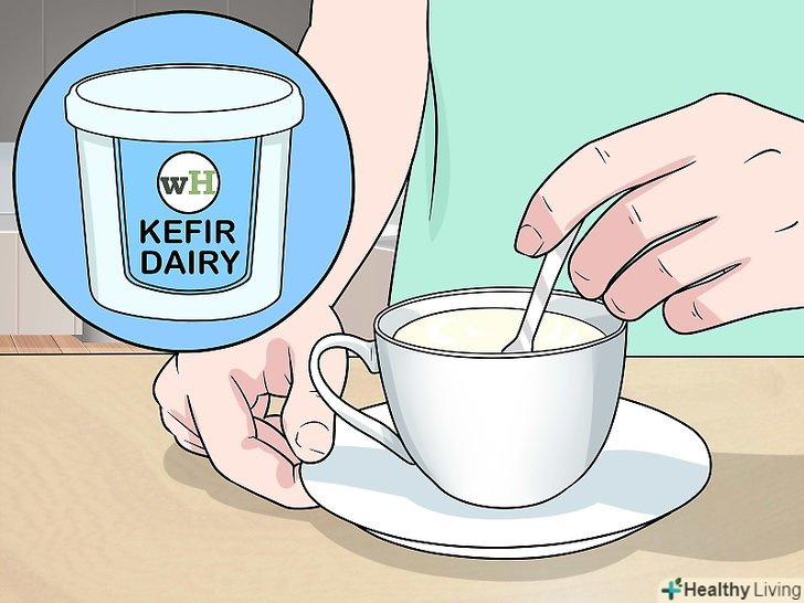 Пийте молочний кефір замість молока.щоразу, коли ви зазвичай використовуєте для їжі молоко або йогурт, замініть їх кефіром. Кефір є відмінною базою для соусів, і його навіть можна використовувати для випічок, як корисна альтернатива молоку. Розглянемо наступні варіанти:- Їжте на сніданок кефір з мюслями