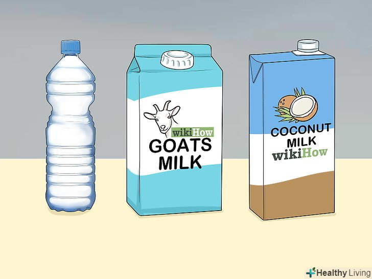 Виберіть кефірну основу.кефір, як правило, робиться з цільного молока. Незбиране молоко надає кефіру гострий аромат і фактуру йогурту. Він добре ллється, його легко пити або використовувати для випічки або для приготування напоїв. Для приготування більш густого кефіру, додайте трохи вершків. Якщо ви віддаєте перевагу не пити коров'яче молоко, то спробуйте наступні альтернативні основи:- Вода. Ви можете зробити ферментований кефірний напій на водній основі, який збереже свою поживну цінність. Використовуйте очищену воду, оскільки водопровідна вода містить хімічні речовини, які можуть вбити кефірний грибок.