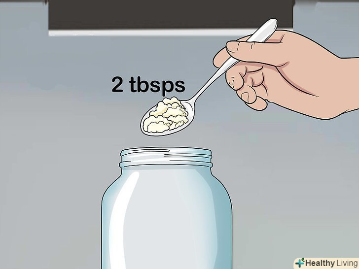 Насипте 2 столові ложки кефірних грибків в чисту скляну банку.для початку це буде хорошим кількістю грибків, щоб у вас вийшов кефір з звичайним смаком. Потім ви зможете експериментувати, додаючи більше або менше грибків. Ви помітите, що їх кількість дійсно впливає на смак. Все буде залежати від ваших особистих переваг.