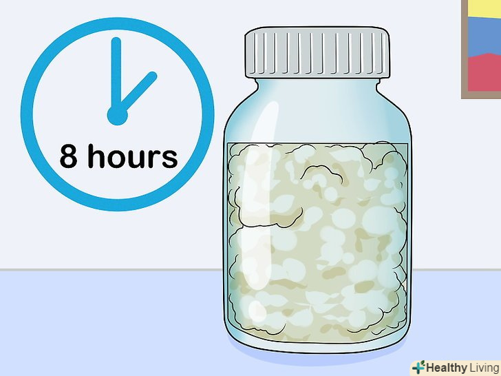 Нехай суміш ферментується протягом 8 годин.процес ферментації займає кілька годин, тому вам буде простіше зробити закваску на ніч і використовувати її вранці. Чим довше ви дозволите грибку робити свою роботу, тим гостріше буде смак кефіру, а також він буде виходити більш густим.- Якщо ви віддаєте перевагу менш ароматний кефір, то ви можете почати вживати його після 5 годин ферментації, і не чекати всю ніч.