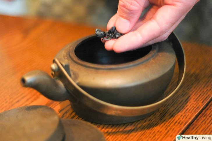 Покладіть чайний лист в чайник для заварювання.кращим вибором буде скляний або керамічним чайник. Кількість заварки залежить від ваших особистих переваг і те, наскільки міцний чай ви хочете отримати. Зазвичай 4 столових ложки заварки на один літр чаю буває досить.