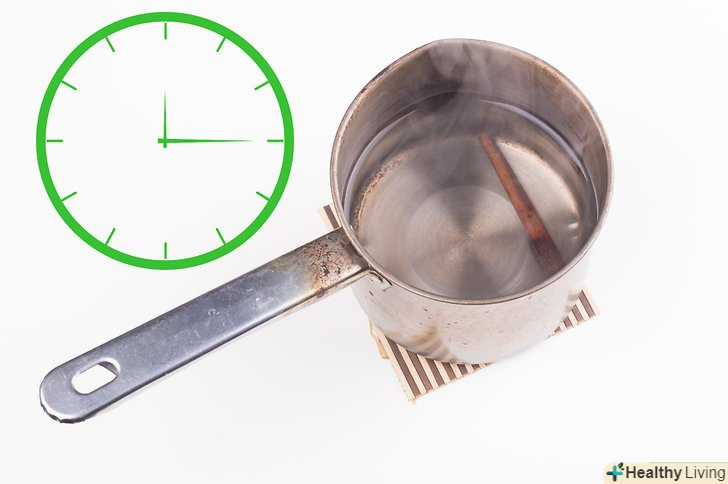 Додайте в ємність воду і паличку кориці.налийте 1 ½ склянки води в ємність середнього розміру. Додайте 1 паличку кориці і накрийте кришкою, перш ніж поставити на плиту.[1]- Можна використовувати скляний чайник, каструлю або іншу ємність.