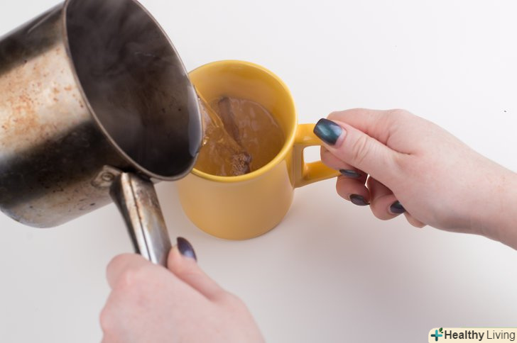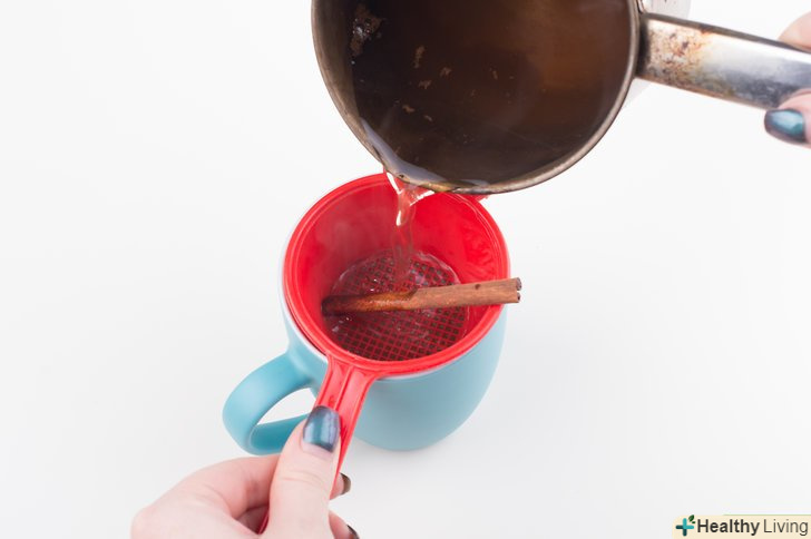 Процідіть чай в чашку і подавайте.якщо чай заварився, процідіть його через дуже дрібне сито в чашку. Сито дозволить відфільтрувати дрібні частини кориці, які могли відокремитися під час заварювання. Напій слід подавати або випити відразу ж.[4]- Поки ви будете заварювати і проціджувати чай, напій встигне охолонути. Якщо він недостатньо Гарячий, перелийте проціджений чай назад в ємність і підігрійте.
