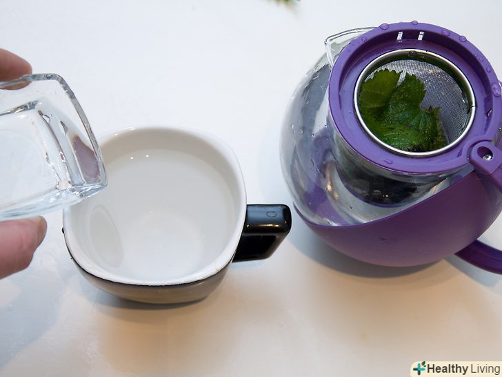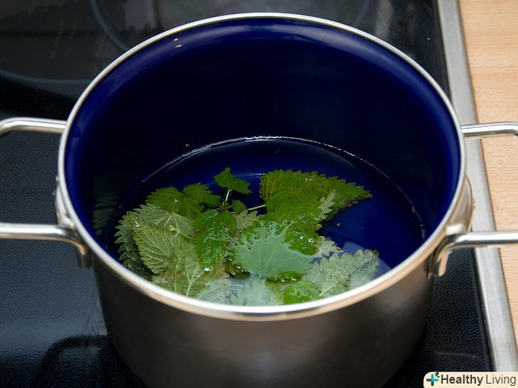 Прокип'ятіть кропиву.покладіть листя в киплячу воду на 10-15 хвилин або до тих пір, поки вода не стане світло-зеленою. Одного нещільно наповненого склянки листя буде достатньо для двох чашок чаю, хоча ви можете зробити його слабкіше або міцніше.- Якщо ви не хочете забруднити каструлю або чайник, просто залийте кропиву окропом і дайте настоятися,