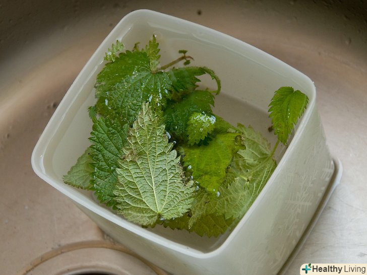 Вимийте кропиву.переберіть зібране листя і видаліть всіх випадково залишилися на них комах. Промийте листя в ситі під проточною водою, видаляючи пил і бруд руками в рукавичках.